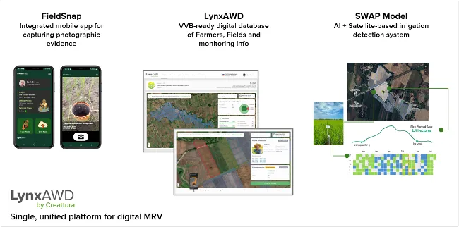 「LynxAWD」は、AWDの実施状況を管理するための情報を統合的に扱うプラットフォームで、協力農家の基本情報や圃場面積、さらには水の管理状況についてのデータを一元的に管理することが可能です。現地での排水や湛水の状態を把握するため、撮影された写真データをモバイルアプリ「FieldSnap」と連携し、シーズンごとに10万枚を超える画像を自動で整理する仕組みが搭載されています。