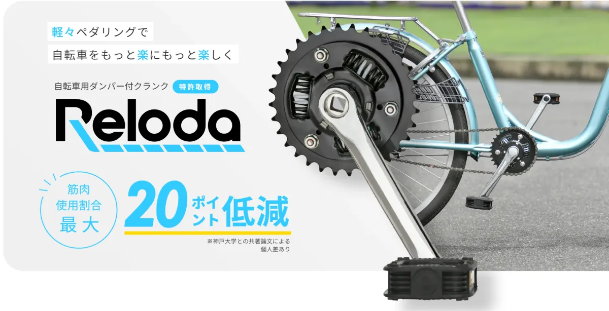 Relodaは、自動車に使われているクラッチのダンパーの仕組みを自転車に応用したものです。ペダルを漕ぐ際に、クランクの先端に取り付けられたRelodaのダンパーが内蔵されたスプリングを縮め、その動きがペダリングをサポートします。この仕組みにより、筋肉にかかる負担が軽減され、自転車がより楽に漕げるようになります。
