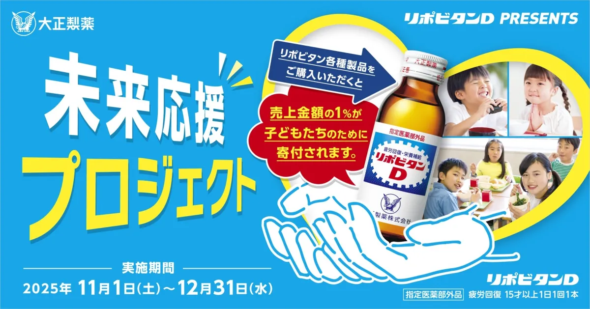 大正製薬株式会社が、株式会社ツルハホールディングスの協力のもと、子どもたちの明るい未来を支援する「子どもたちのみらいのために未来応援プロジェクト2025」を発表しました。このプロジェクトは、リポビタン各種製品の売り上げの一部を、地域に住む子どもたちを応援するための寄付に充てるものです。2024年からスタートするこのプロジェクトの詳細について見ていきましょう。