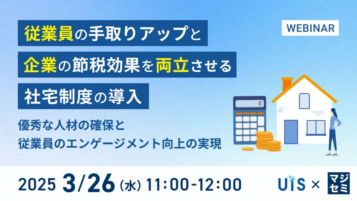 2025年3月26日(水)に行われる無料オンラインセミナーでは、社宅制度の利点と導入に向けた具体的な手法を解説します。特に、社宅と住宅手当の違い、それぞれのメリット・デメリット、また金額シミュレーションを通じた具体的な効果についても詳しく触れます。