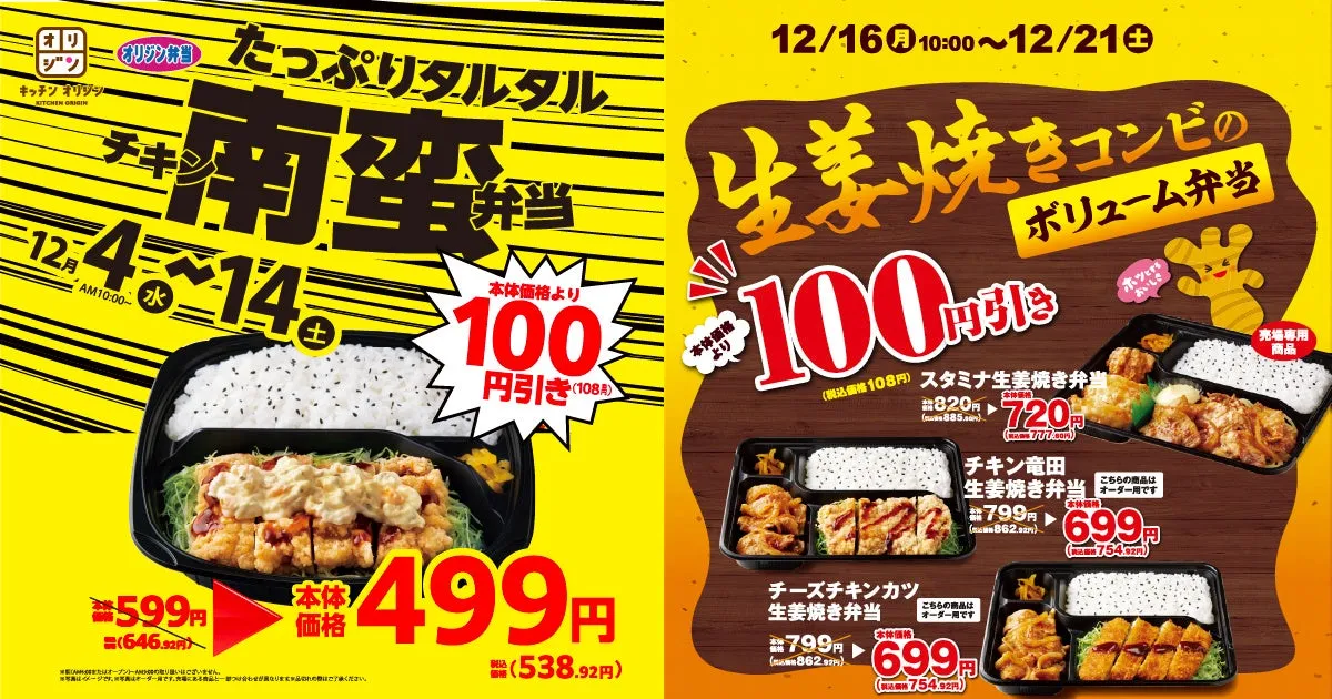 弁当と惣菜専門店「キッチンオリジン」と「オリジン弁当」を展開するオリジン東秀株式会社は、この12月に「ボリューム満点、お得な年末お弁当セール」を開催します。このセールは家計応援を目的とし、忙しい年末にぴったりの美味しいお弁当をお手頃価格で提供します。