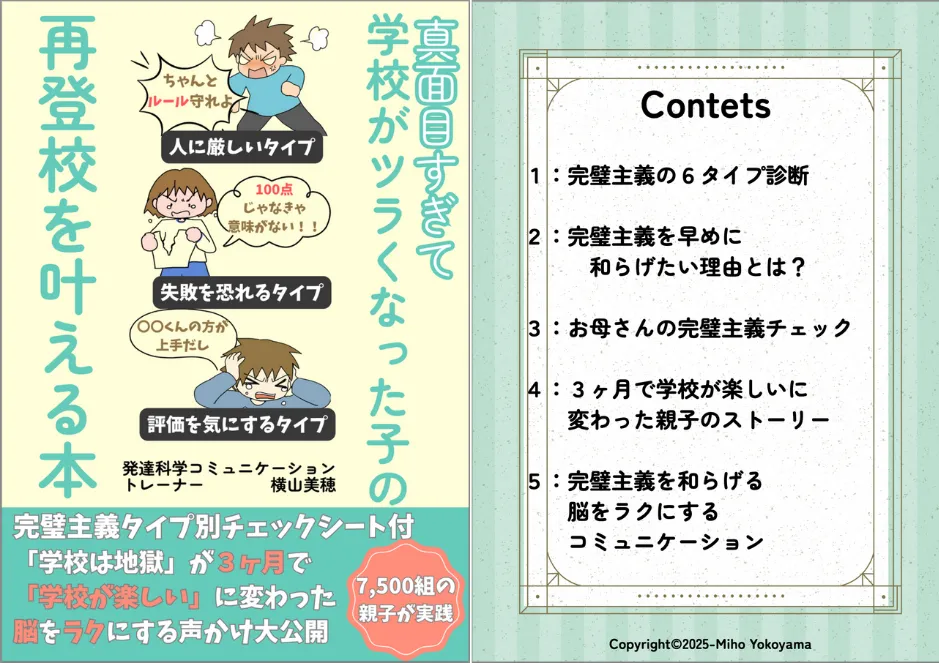 最近、不登校の児童・生徒の数が35万人を超え、その原因として「真面目」な子どもたちが「完璧主義」に陥り、心が疲れてしまう状況が指摘されています。発達科学コミュニケーション講師である横山美穂氏は、こうした現実を踏まえ、悩む保護者に向けて『真面目すぎて学校がツラくなった子の再登校を叶える本』という電子書籍を無料で配布しています。