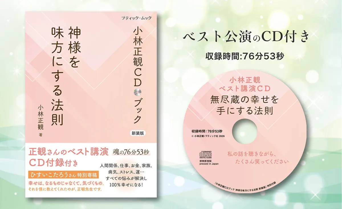 2026年1月28日、株式会社ブティック社から新装版『小林正観CDブック 神様を味方にする法則』が発売される。この書籍には、小林正観氏の名講演「無尽蔵の幸せを手にする法則」を収録したCDが付いており、いまだ多くの読者と聴講者に支持されてきた彼の教えを再体験できる素晴らしい機会を提供している。
