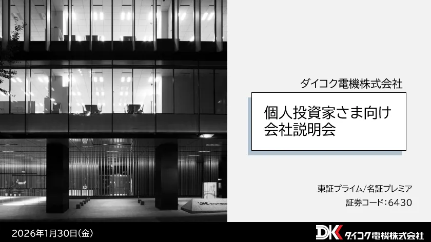 ダイコク電機株式会社が2026年1月30日(金)に実施した個人投資家向けのWEBセミナー。その内容が2026年2月4日(水)からアーカイブ動画として公開されています。このセミナーは、個人投資家や業界関係者にとって見逃せない情報が盛りだくさん。