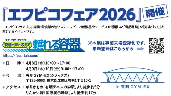 エフピコは、単に容器を供給するだけではなく、現場の声に耳を傾け、業界全体の進化に貢献するパートナーを目指しています。参加者の皆さんを心よりお待ちしております。