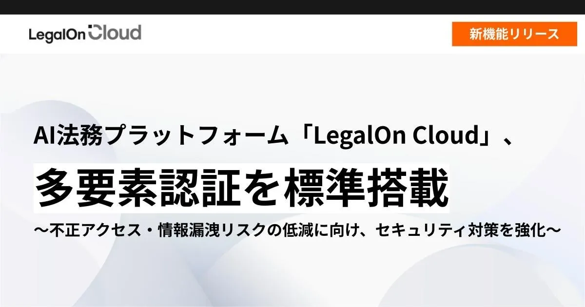 東京・渋谷に本社を構える株式会社LegalOn Technologiesが提供する、AI法務プラットフォーム「LegalOn Cloud」は新たに多要素認証機能を標準搭載しました。この機能は、ユーザーのログイン時のセキュリティを大幅に向上させ、サイバー攻撃や情報漏洩からデータを守るための強力な武器となります。