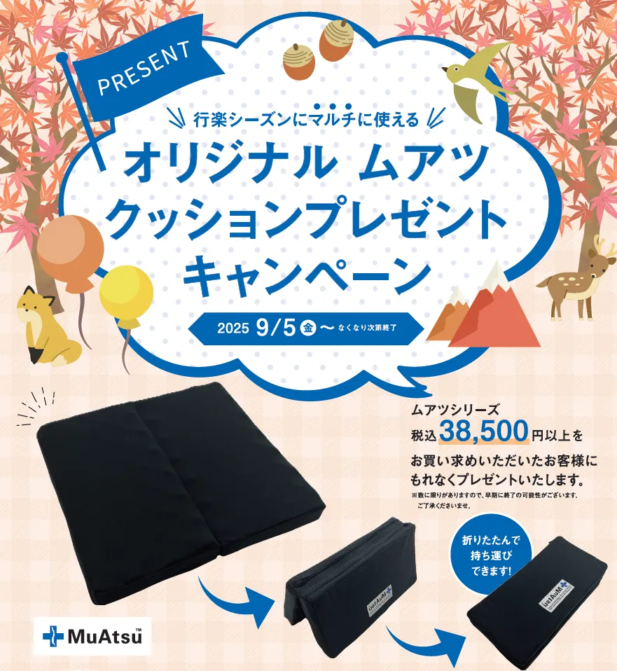 今回のキャンペーンで贈呈される特製「折りたためるムアツクッション」は、サイズが35×35×3.5cmとコンパクトで使いやすく、オフィスやアウトドアでの使用にも最適です。軽量で持ち運びが簡単なので、どんなシーンでも活躍すること間違いなしです。残暑の厳しい日々でも、このクッションを利用すれば快適に過ごすことができます。