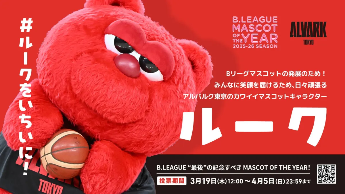 2026年3月19日から4月5日まで、B.LEAGUE MASCOT OF THE YEAR 2025-26が開催されています。この年の特別なポイントは、昨年ルークが4位だったという背景もあり、彼の「いちいになりたい」という強い想いが込められている点です。ルークは、過去最長の18日間この想いを胸に、マスコットオブイヤーを目指します。アルバルク東京のマスコットであるルークは、チームが三冠を狙っている今シーズン、その挑戦を身近で支えてきた存在であり、特別な役割を持つマスコットなのです。