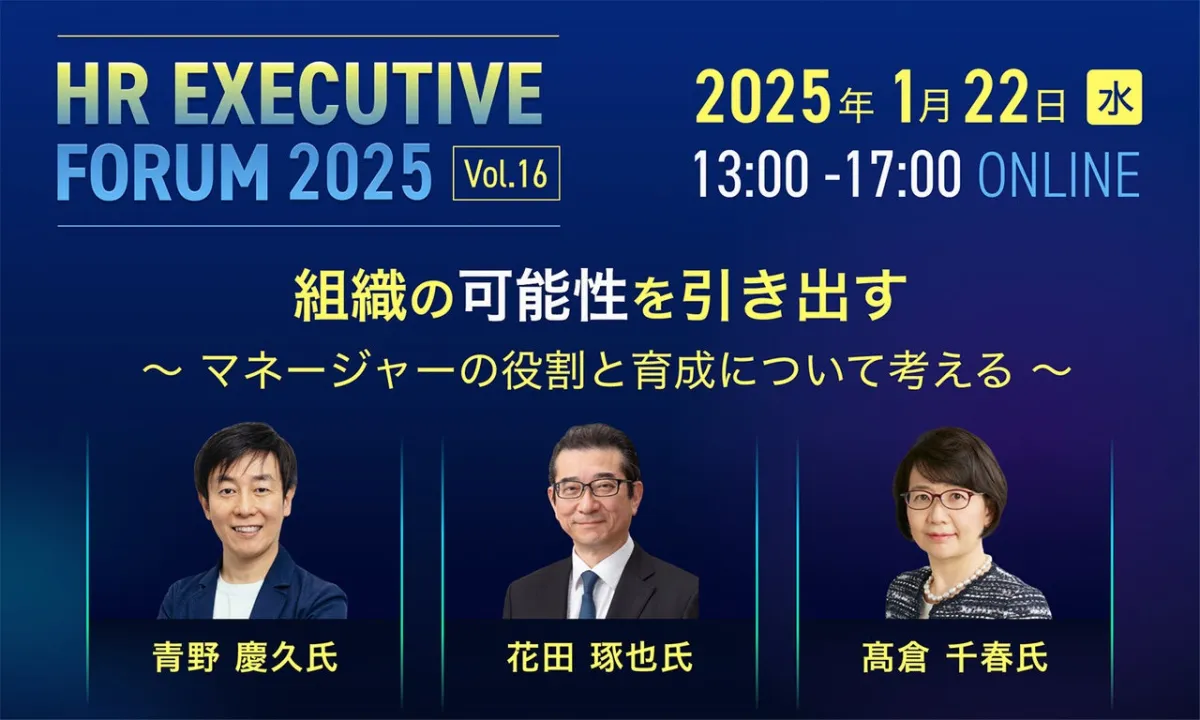 2025年1月22日、人事のプロを支援するポータルサイト『HRプロ』を運営するProFuture株式会社が主催する「HRエグゼクティブフォーラム2025 ONLINE(Vol.16)」がオンラインで開催されます。本フォーラムは、大手企業の経営者、人事担当役員、部長クラスの方々を対象に、組織力強化におけるマネージャーの役割と育成について深く掘り下げるものです。