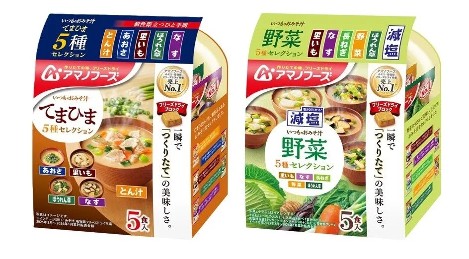 アサヒグループ食品株式会社が展開する「アマノフーズ」ブランドから、3月2日より新商品が発売されます。その名も『いつものおみそ汁 てまひま5種セレクション』『減塩いつものおみそ汁 野菜5種セレクション』『減塩いつものおみそ汁 里いも』の3製品です。これらは、手軽においしく、また健康にも配慮したアイテムとして、多くの家庭の夕食に彩を添えることでしょう。