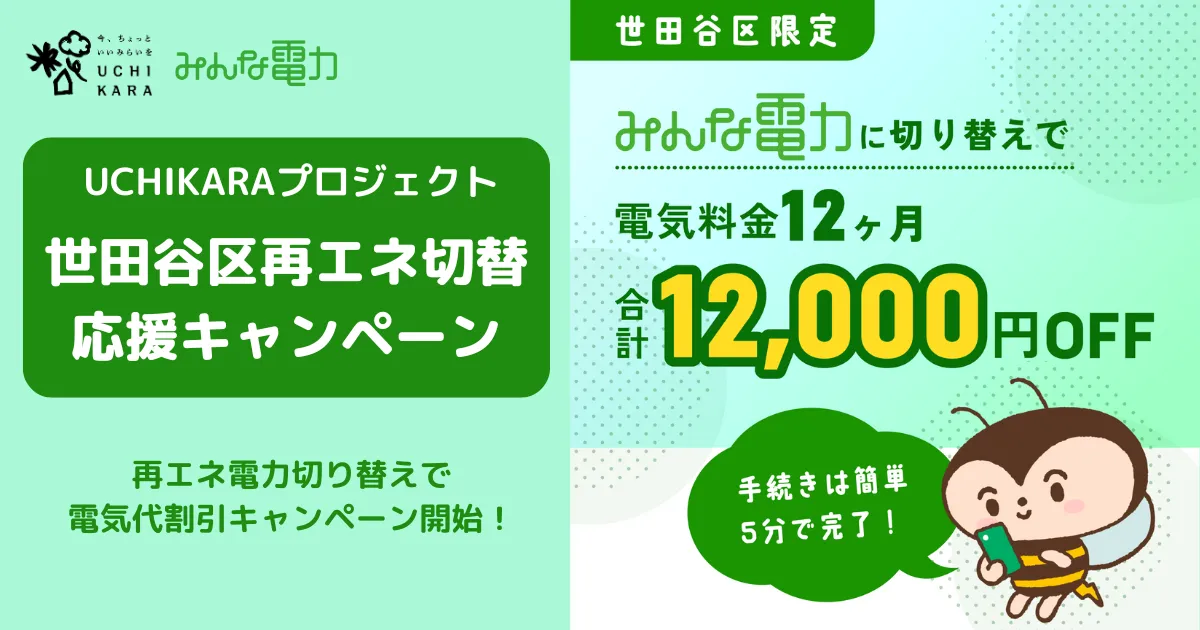 世田谷区に在住の皆さんに嬉しいお知らせです。株式会社UPDATERが提供する再生可能エネルギー電力サービス「みんな電力」は、世田谷区が推進する「UCHIKARAプロジェクト」と協力し、2025年7月1日から世田谷区民を対象に電気代割引キャンペーンを開始します。この取り組みは、地域社会が脱炭素化に向かう中、住民の皆様にもその恩恵を直接感じていただける素晴らしい機会です。