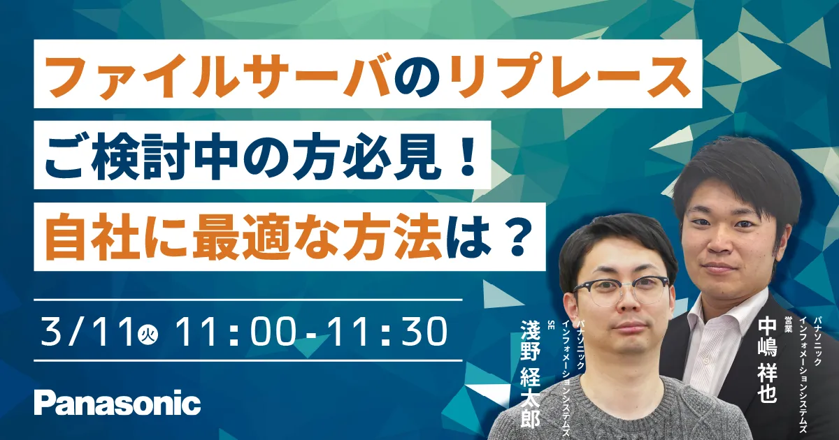 パナソニック インフォメーションシステムズ株式会社では、2025年3月11日(火)にオンラインセミナー『ファイルサーバのリプレースご検討中の方必見!自社に最適な方法は?』を開催します。このセミナーは、ファイルサーバのリプレースを考えている皆様に向けて、最適な利用方法を提案する内容となっています。