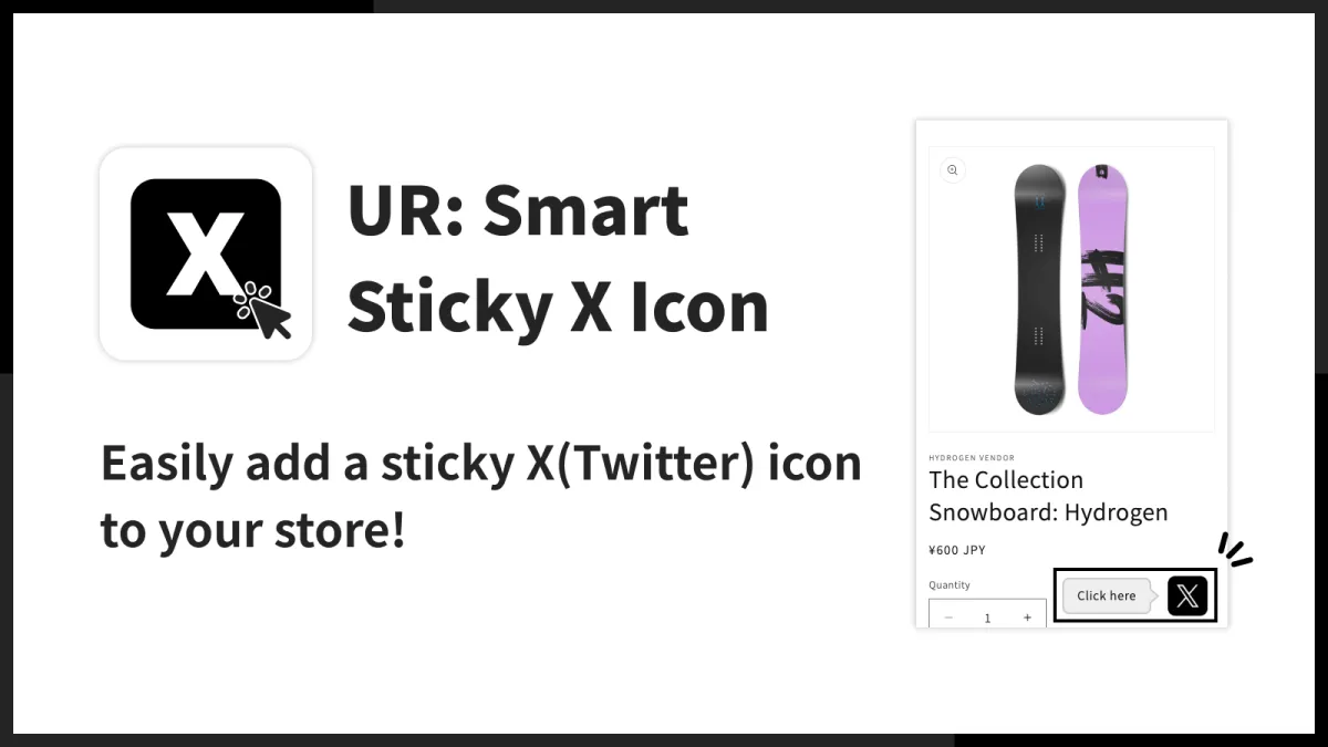 UR: Smart Sticky X Icon」を正式にリリースしました。このアプリは、Shopifyストアに特化しており、訪問者がサイトを見る際に、常に同じ場所に表示されるX(Twitter)リンクボタンを簡単に設置できるという特徴があります。