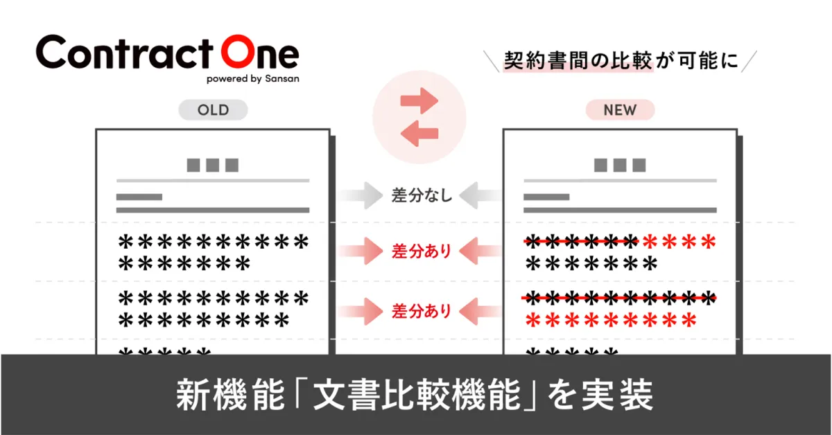 Contract One」に新しい機能を実装しました。それは、新旧の契約書の差分を自動で検出する「