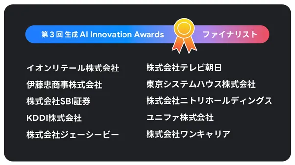 生成AI Innovation Awardsは、GoogleのAI技術を用いて企業が展開する革新的な取り組みを評価し、未来の可能性を見出すことを目的としたイベントです。2025年3月13日に予定されている「AI Agent Summit '25 Spring」で最終結果が発表される予定で、多くの期待が寄せられています。