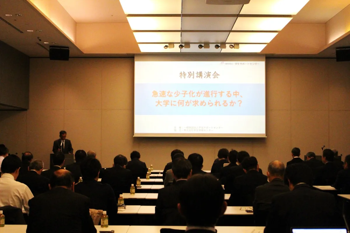 一般財団法人学生サポートセンターは、2024年12月9日、新宿NSビルのスカイカンファレンスホールBで「急激な少子化が進行する中、大学に何が求められるか?」というテーマの特別講演会を実施しました。この講演会は、少子化という重大な社会課題に向き合う大学の将来についての理解を深めることを目的としており、教育や大学運営に関与する約70名の関係者が集まって参加しました。