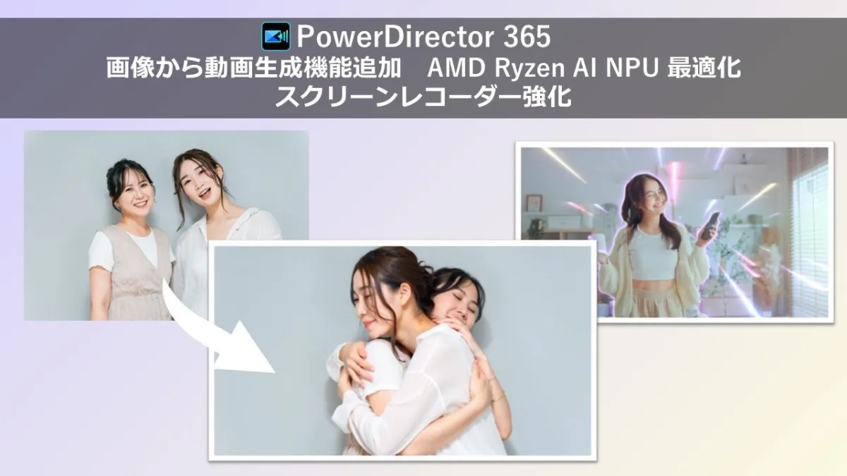 サイバーリンク株式会社は、国内での販売シェアで10年連続No.1を誇る「PowerDirector 365」に新たに「画像から動画生成」機能を追加したと発表しました。この新機能により、1枚または2枚の画像をもとにAIが動画を作成できることが特徴です。利用者はテンプレートから動作を選択するか、テキストで具体的なリクエストを入力することで、自分だけのオリジナル動画を簡単に生成することができます。