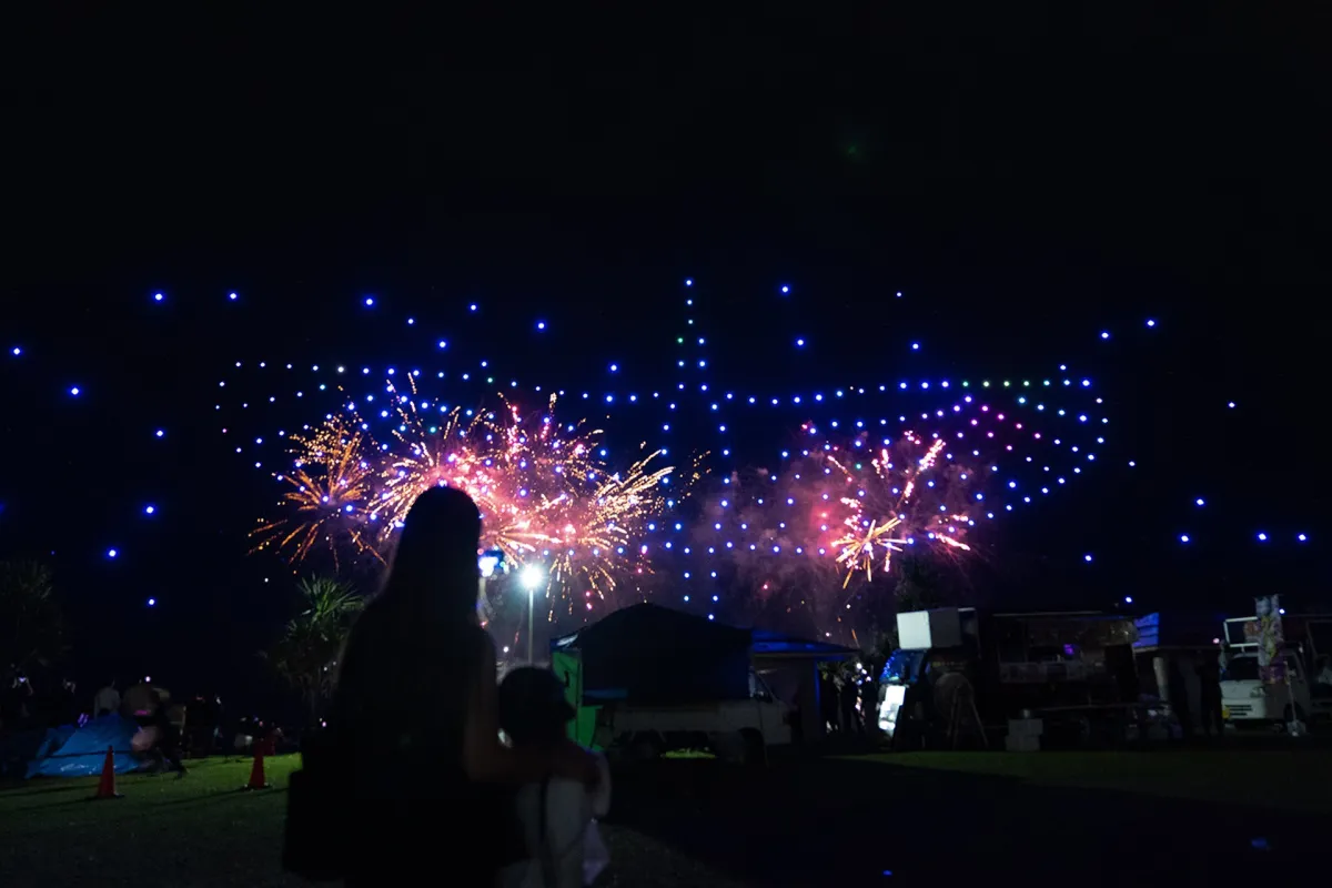 高度なディレクションとともに、300機のドローンが登場し、約10〜15分にわたって繰り広げられたこのショーは、フィナーレを飾る圧巻のパフォーマンスとなりました。ドローンの立体的な演出と花火のコラボレーションは、観客に忘れられない印象を与えました。
