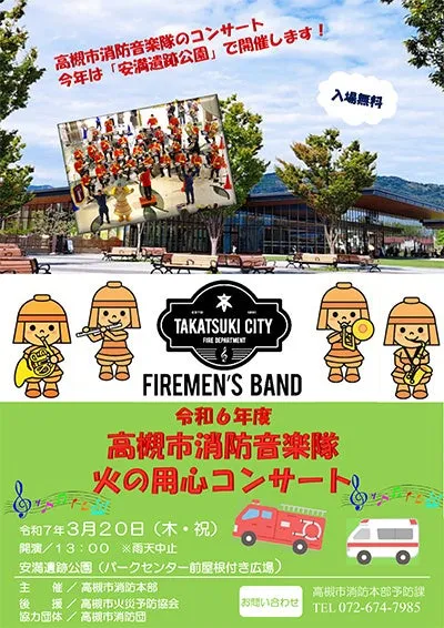 このイベントは、家族全員が楽しめる内容になっており、特に子供たちにとっても火災予防について学ぶ良い機会となる。日常の生活の中で、安全な暮らしを守るための知識を身につけることはとても大切だ。安満遺跡公園の美しい自然の中で、楽しみながら災害予防について考えてみませんか?ぜひご家族みんなで訪れて、音楽と共に学びのひとときを共有してください!