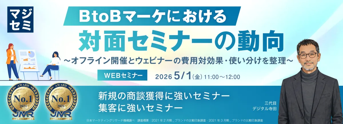 現在の参加者は、必ずしも対面セミナーに足を運ぶ必要性を感じていないかもしれません。そこで、見込み顧客との接点を持ち続けるためには、どのようにウェビナーを位置づけていくのかが重要です。限られたリソースの中で、成果を最大化するための手法を探っていくことが、今後のBtoBマーケティングにおいて鍵となるでしょう。