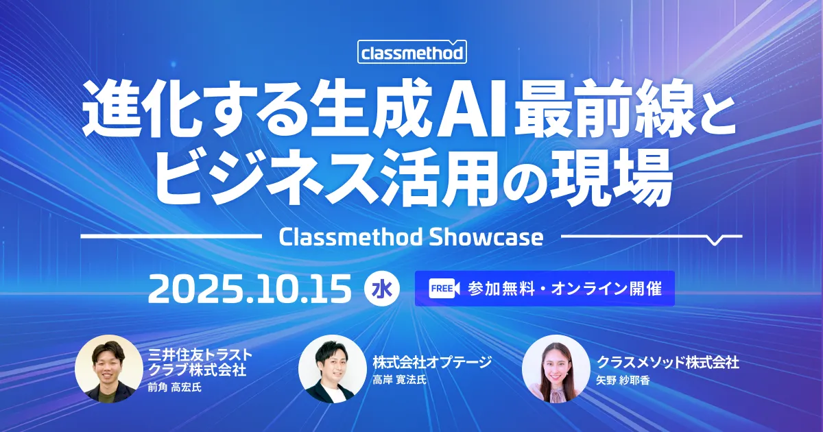 クラスメソッド株式会社は、2025年10月15日(水)に「Classmethod Showcase 進化する生成AI最前線とビジネス活用の現場」と題したオンラインカンファレンスを開催します。このイベントは、急速に進化する生成AI技術の最新情報と、それをビジネスにどう活用するかを深く掘り下げる場です。