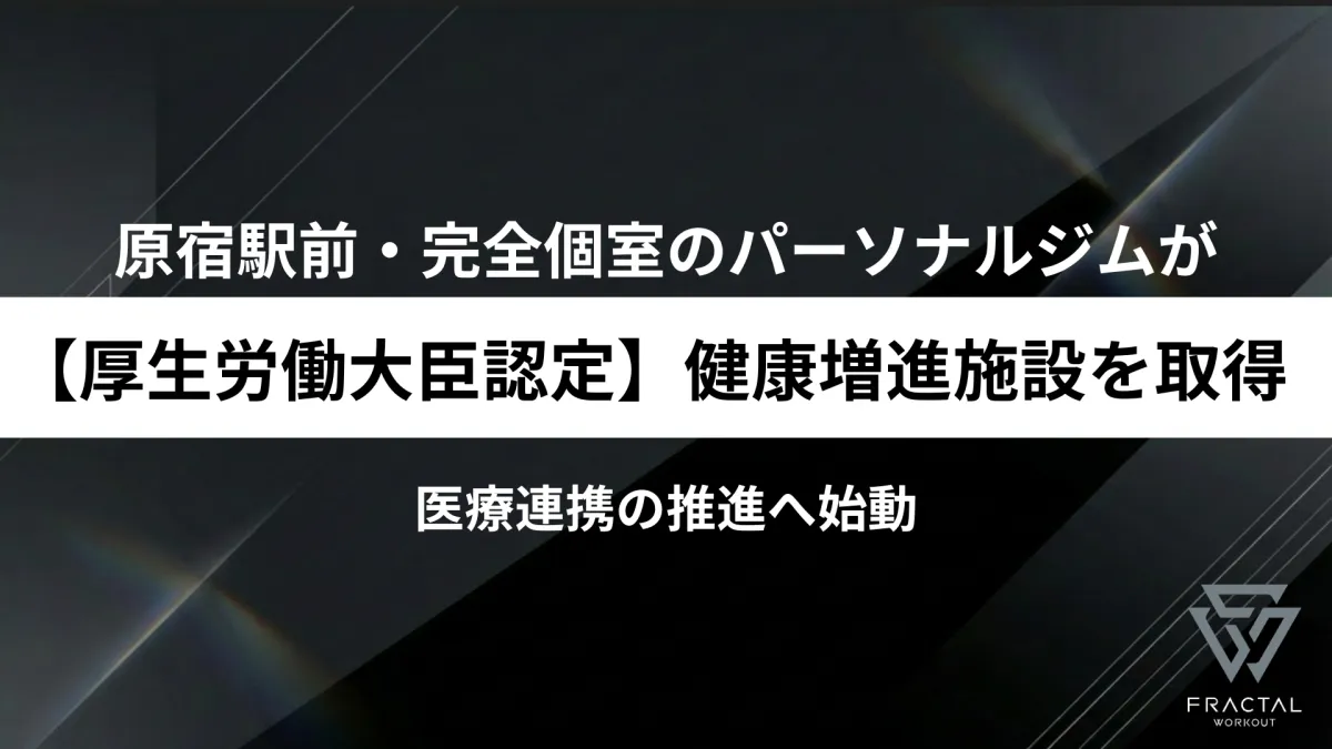 東京・原宿の駅前に位置する完全個室パーソナルジム「フラクタルワークアウト」が、厚生労働大臣から健康増進施設としての認定を受けました。この認定を受けたことで、フラクタルワークアウトはより多くのビジネスパーソンや経営者に安全で信頼性の高いサービスを提供できることを目指します。