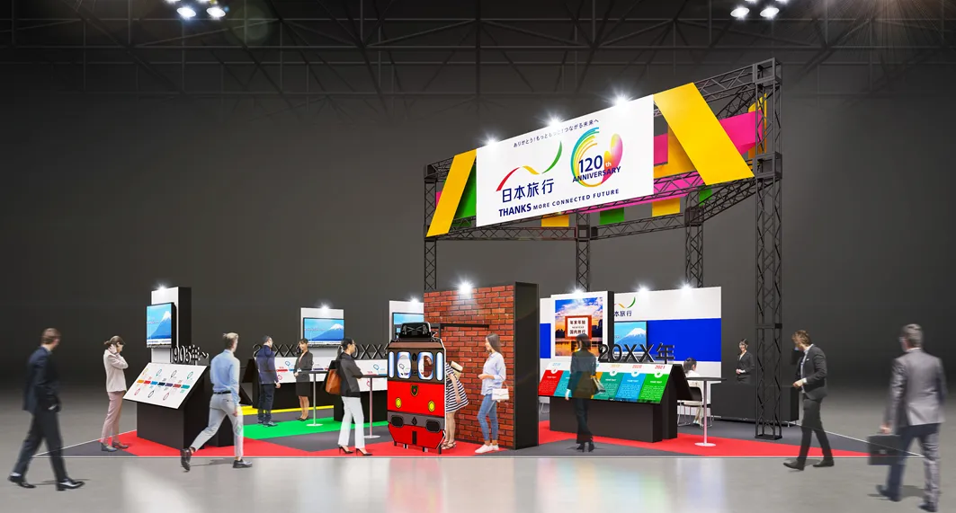 - コーポレートブース(E-120)では、日本旅行年表や事業紹介展示、動画放映などが行われます。また、関心がある方には事業紹介セミナーも予定されています。