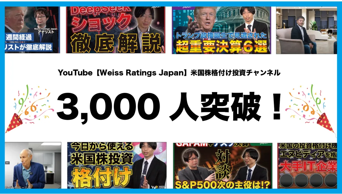 2025年3月、株式会社Wealth Onが運営する米国株特化型YouTubeチャンネル「【Weiss Ratings Japan】米国株格付け投資」が、開設からわずか2ヶ月で3,000人の登録者を突破しました。この快挙により、同チャンネルは投資家にとって貴重な情報源となっており、今後の展望にも期待が寄せられています。