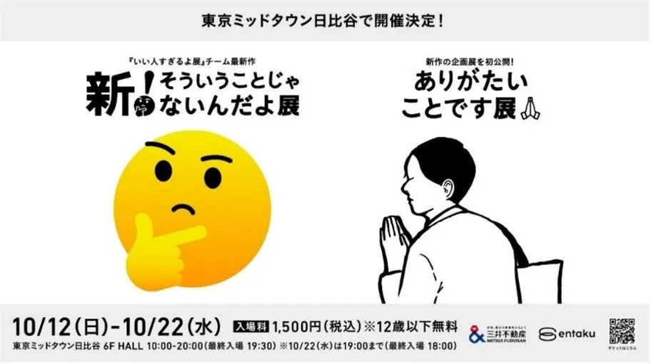 2025年10月12日から22日までの期間、東京ミッドタウン日比谷にて注目の展示イベント『新!そういうことじゃないんだよ展+ありがたいことです展』が開催されます。この展示会は、人気のある企画『いい人すぎるよ展』のチームが手がけ、累計来場者数が50万人を超える成功を収めたものです。