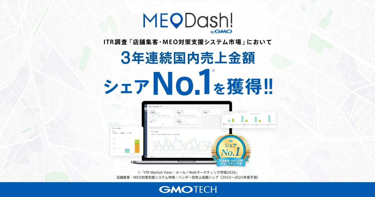 GMO TECHの「MEO Dash! byGMO」がMEO市場で3年連続の売上シェアNo.1を獲得