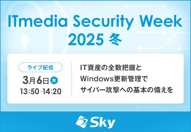 3月3日(月)から3月11日(火)までの約一週間、ITmediaが主催するライブ配信セミナー「ITmedia Security Week 2025 冬」が開催されます。このイベントにおいて、Sky株式会社は協賛企業として参加し、サイバーセキュリティに関する最新の知識と実践的な対策を共有するためのセミナーを行います。