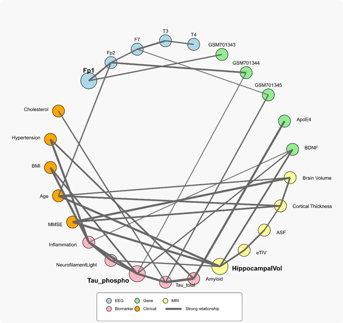 アルツハイマー病(AD)は、記憶力や思考力が徐々に低下していく進行性の疾患です。これまでの研究では、脳の構造変化や特定タンパク質の異常、遺伝子活動、脳の電気的な活動といった異なるデータが独自に解析されるケースが多く、病気の全体像を統合的に把握することが難しい状況でした。この研究では、複数のデータを統合し、病態メカニズムの新たな仮説を導出するために、AI技術を駆使しました。
