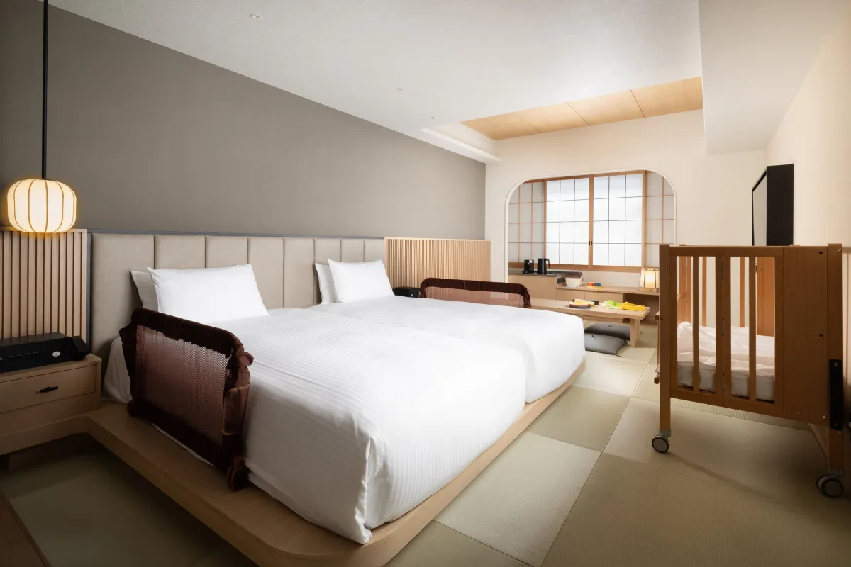ノボテル奈良では、赤ちゃん用の貸出グッズが豊富に取り揃えられており、家族が持参する荷物が少なくて済むのが大きな特徴です。客室は段差のない安全設計で、転倒の心配が少なく、きっと安心してご滞在いただけます。おむつウォーマーやベビーバス、補助便座など、育児中の家庭が「助かる!」と思えるアイテムも充実しています。また、コンセントカバーやコーナーガードといった安全対策も万全です。