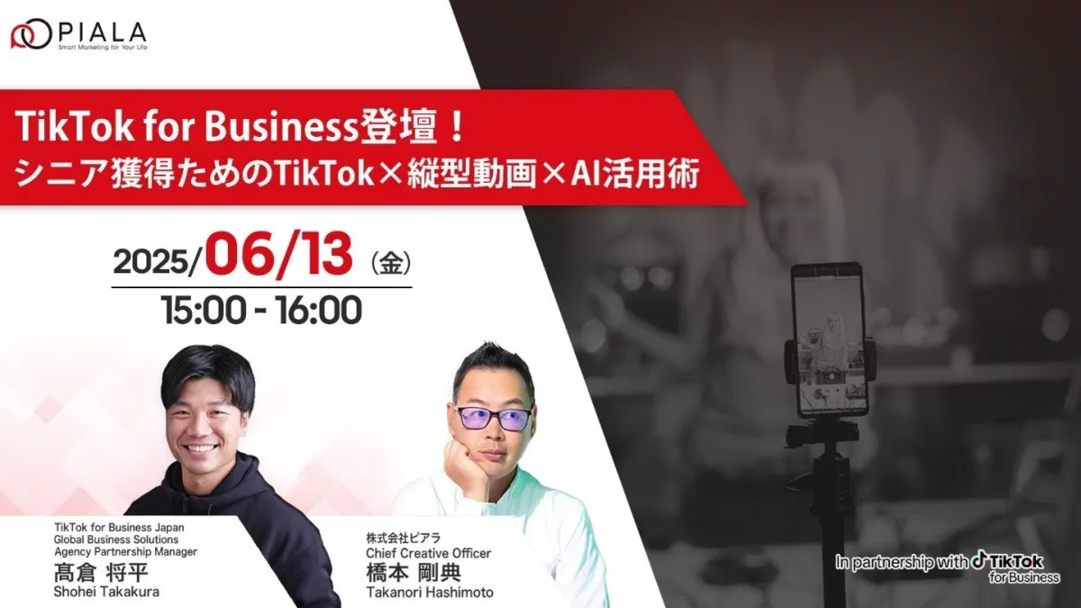 2025年6月13日、株式会社ピアラ主催でシニア層をターゲットとした「TikTok for Business」の無料オンラインセミナーが開催されます。このセミナーは広告代理店や広告運用会社などが対象となり、シニア層の獲得に向けた具体的な戦略が学べる貴重な機会です。