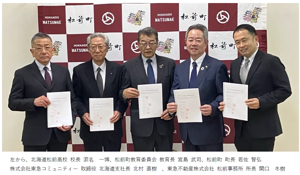 東急不動産は2022年に松前町とのまちづくり計画の策定に関する協定を締結したのを機に、松前高校との連携を深めてきた。本協定では、東急コミュニティーが松前高校卒業生を積極的に採用し、地域へのUターンを支援することで、技術人材の流出を防ぎ、地域活性化につなげることを目指す。この人材育成および循環のシステムは、松前町にとって新たな活力を呼び込むものであり、持続可能な社会作りへの貢献を目指している。