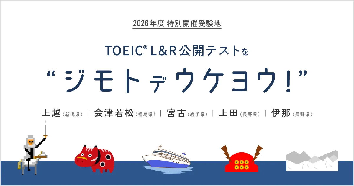 国際ビジネスコミュニケーション協会(IIBC)によると、2026年度のTOEIC L&R公開テストが昨年に続き特別開催されることが決まりました!今年は、会津若松、宮古、上越、上田、伊那の5つの地域での実施が予定されています。この特別開催は、受験機会の拡充と受験者の利便性向上を目的としており、英語学習を志す多くの方々に利用していただける貴重なチャンスです。