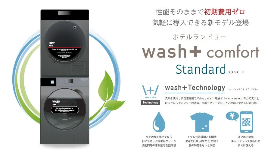 株式会社wash-plusが新しく提供を開始した「wash+ Comfort standard」は、ホテル向けランドリーの革命をもたらす存在です。特許技術「洗剤を使わない洗濯」を活用し、環境への配慮を重視しつつ、清潔さと効率を両立させる設計が特長です。この新モデルは、以前のモデルとは異なり、初期費用が0円で導入でき、一台からでも気軽に始められます。