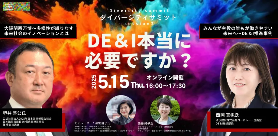 自らの職場でのDE&Iの推進や、未来の社会に向けての取り組みを考える貴重な機会ですので、ぜひご参加をお待ちしています。