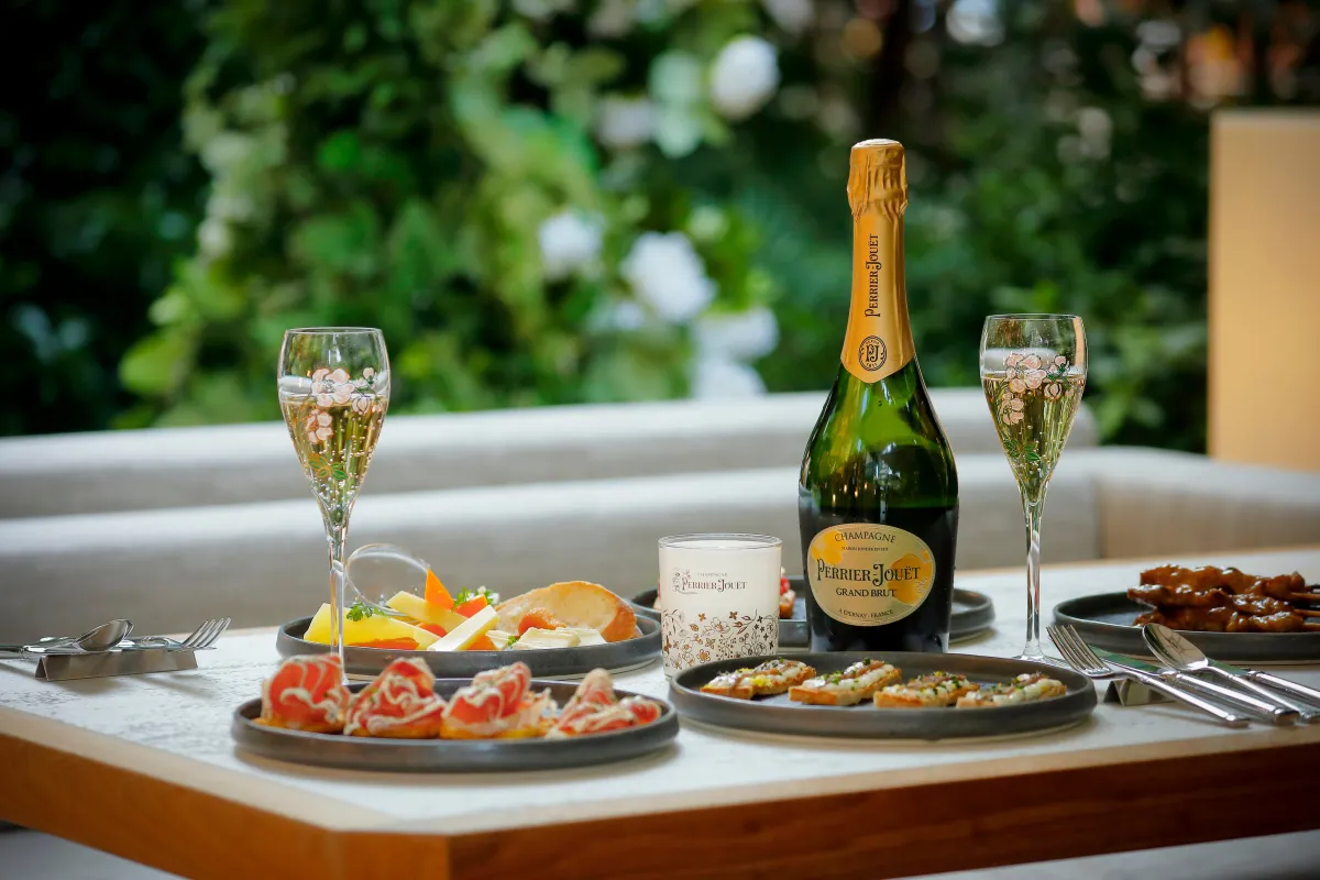 2025年9月30日(火)まで、大阪のフォーシーズンズホテル内オールデイフレンチビストロ「ジャルダン」のテラスで、贅沢なシャンパーニュを堪能できる特別企画『バブル & ブルーム with ペリエ ジュエ』が開催されています。緑豊かなテラスで、ペリエ ジュエ グラン ブリュットを心ゆくまで味わい、非日常のひとときをお楽しみください。