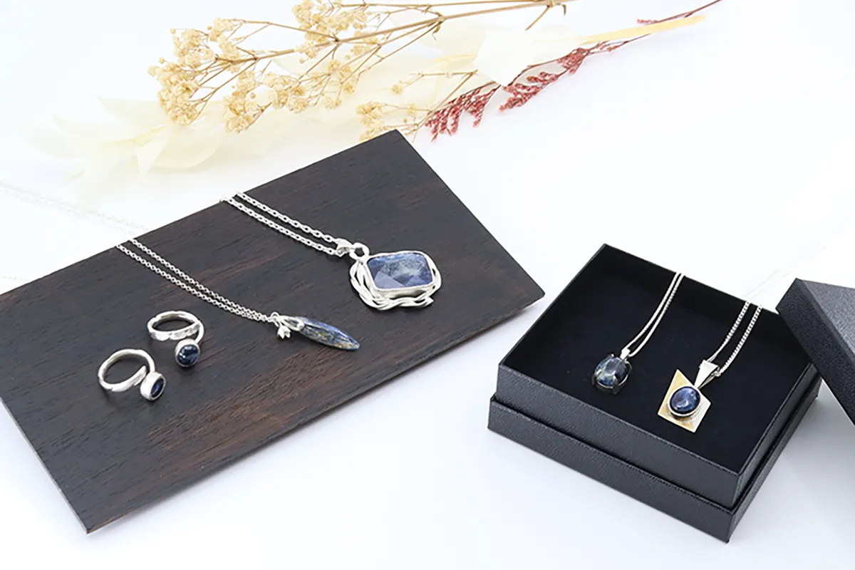 P4は、「遊び心のある、楽しい、穏やかな日々でありますように」という思いから名付けられました。その名前には、自らがカイヤナイトを通じて得た良いご縁を、他の人々にも届けたいという気持ちが込められています。P4のアクセサリーは、石の個性を最大限に引き出すオリジナルデザインが特徴。特にネパール産カイヤナイトの魅力を伝えるべく、独特の美しさを際立たせたペンダントやリングなどを手がけています。