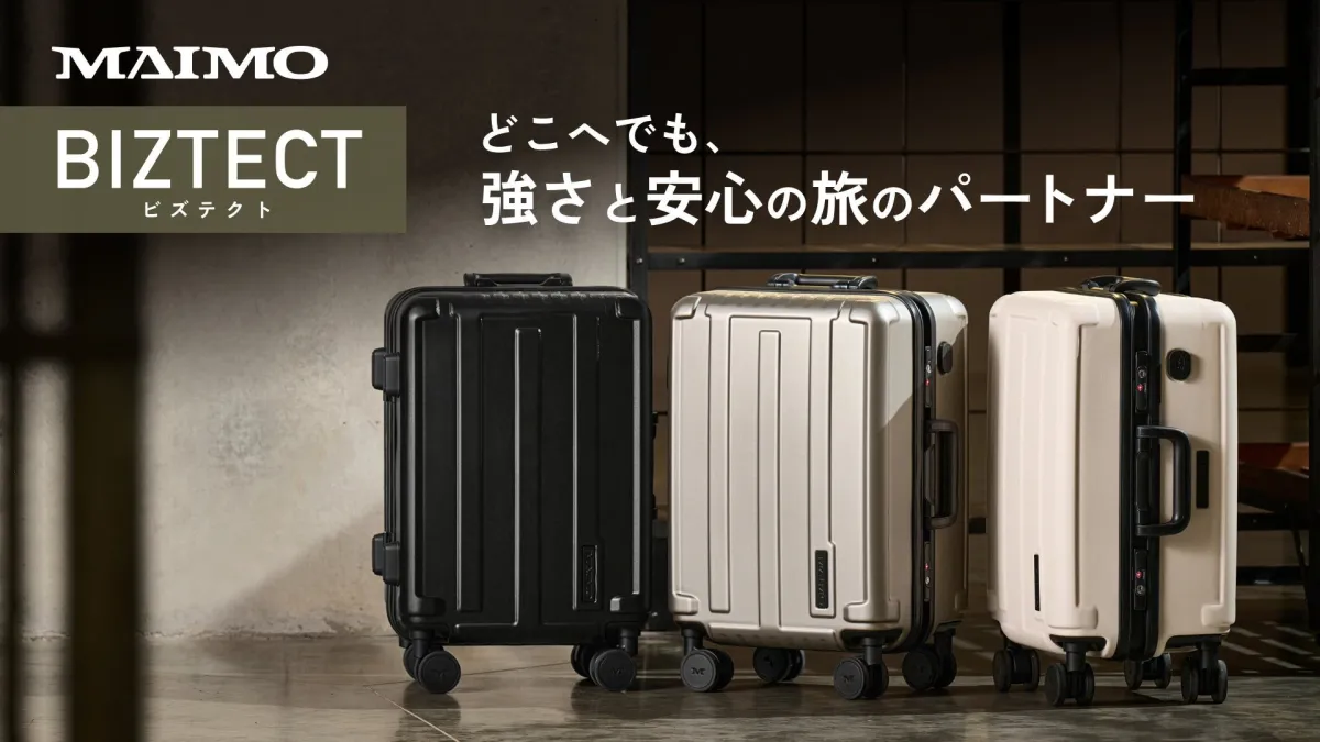 株式会社KURUKURUが展開するトラベルブランド「MAIMO」は、ビジネスシーンに欠かせないスーツケース「BIZTECT」の販売を2025年3月25日から開始します。これまでのトラベルブランドの常識を覆す新製品の登場です。価格はSサイズが19,980円で、カラーバリエーションもディープブラック、ライトベージュ、スチールグレーの3色が揃っています。