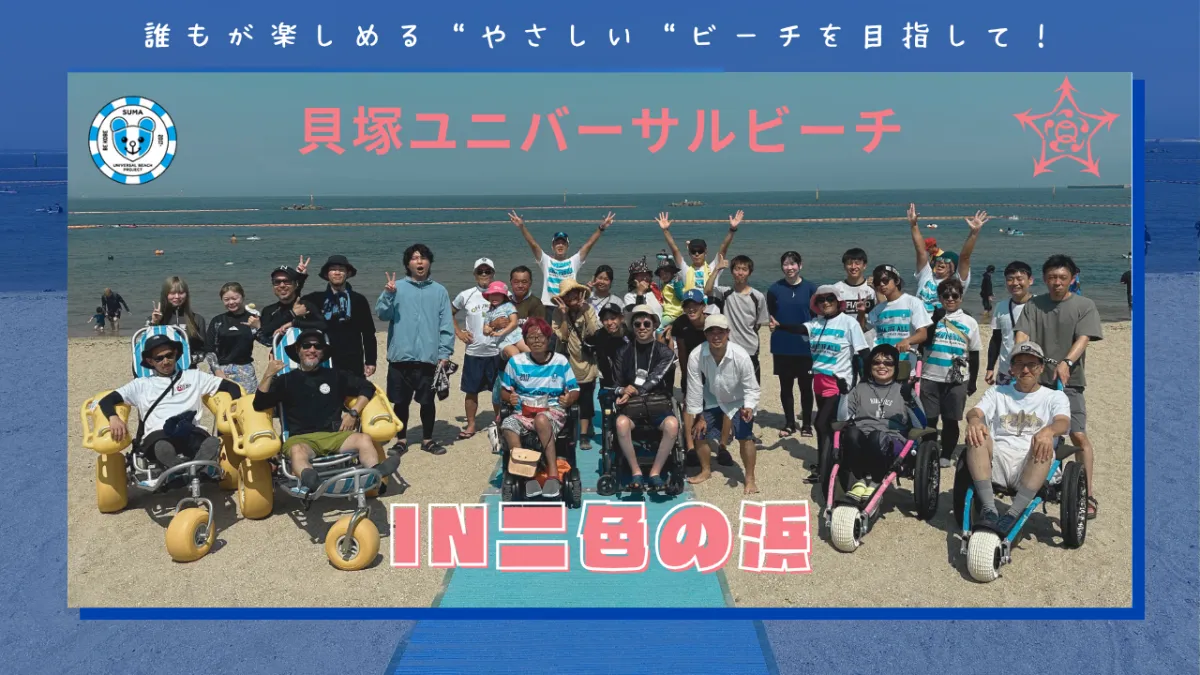 体験会の名称は「~誰もが楽しめる”やさしい”ビーチを目指して!~ 貝塚ユニバーサルビーチ in二色の浜」です。共催には二色の浜魅力向上推進協議会や貝塚地域ブランド推進協議会、さらに協力には二色の浜リバイバル・プロジェクトグループや株式会社二色の浜観光協会などが名を連ねています。