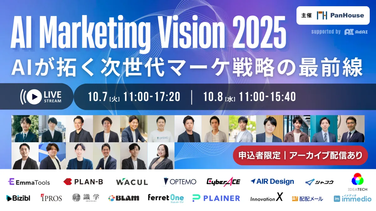 2025年10月7日と8日に開催される「AI Marketing Vision 2025」は、AI技術がもたらすマーケティングの革新をテーマにしたオンラインカンファレンスです。このイベントでは、「マーケティング×AI」に関する最前線の戦略や具体的な成果事例が共有され、今後のマーケティングの方向性について議論されます。