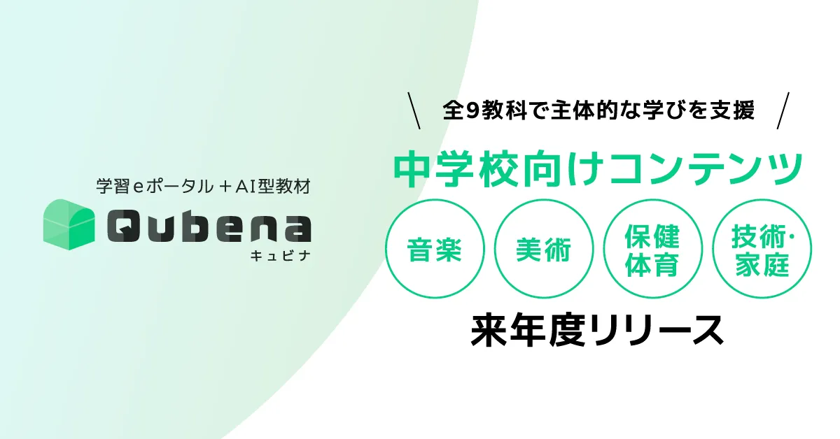 株式会社COMPASSが開発した学習eポータル+AI型教材『キュビナ』が、今後さらなる進化を遂げます。現在、算数/数学、国語、理科、社会、英語の5教科に対応している『キュビナ』に、新たに中学校の音楽、美術、保健体育、技術・家庭の4教科が加わる予定です。この新コンテンツは2026年度に提供が開始され、全国の中学生において多様な学びを支援することを目指しています。