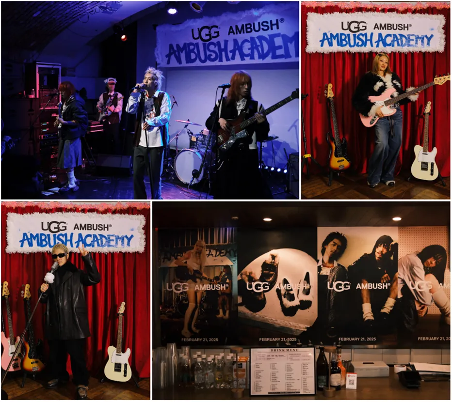 2025年2月21日、東京の表参道にあるロビンクラブで、UGGとAMBUSHのコラボレーションコレクションのローンチイベントが開催された。南カリフォルニアに拠点を置くUGGと、東京発のファッションブランドAMBUSHが手を組み、メリージェーンとペニーローファーという、時代を超えたデザインを新たに解釈したアイテムが誕生した。このコレクションの発表を記念して行われた「BATTLE OF THE KARAOKE BAND NIGHT」は、まさに学園祭を彷彿とさせる内容で、多岐にわたるパフォーマンスによって彩られた。