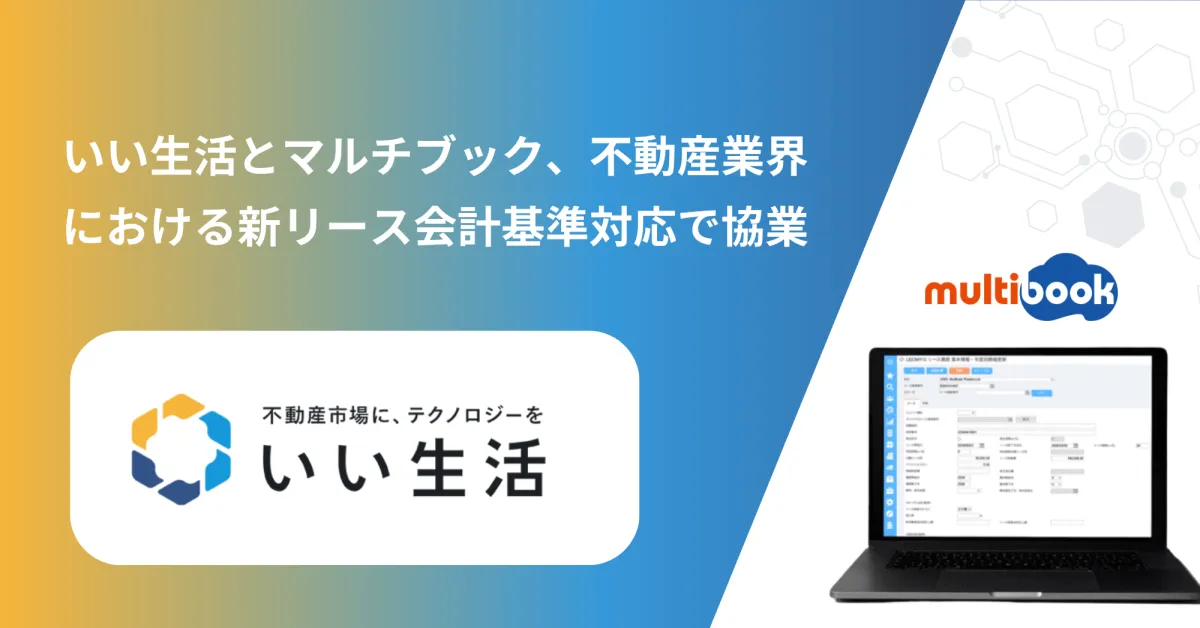 株式会社マルチブックと株式会社いい生活は、不動産業界における新リース会計基準への適応を目指して、販売仲介契約を締結しました。