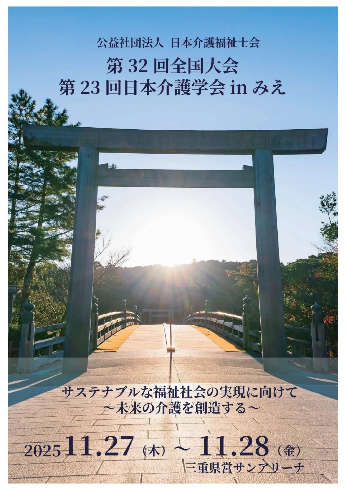 公益社団法人日本介護福祉士会は、2025年の11月27日と28日に三重県営サンアリーナ(伊勢市)にて、「第32回全国大会・第23回日本介護学会」を開催します。