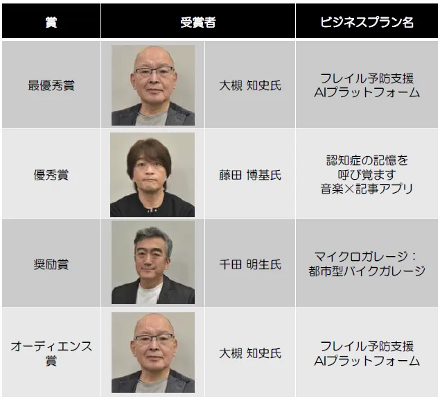 ファイナルでは、各ファイナリストが自らのビジネスプランを発表し、特に優れたプランには賞が授与されました。シニア世代のアイデアや創造力が光る瞬間が、多くの観客に感動を与えました。受賞者は、今後さらなる活動を通じて、社会貢献や地域活性化に寄与することが期待されています。