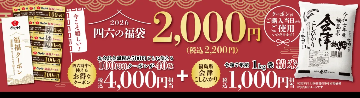 最後に、年末年始を特別なものにする「四六の福袋」。この機会をお見逃しなく、ぜひ店頭に足を運んでのお買い求めをお勧めします。