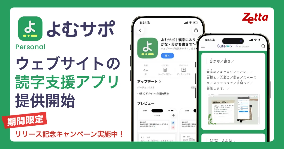 ゼッタリンクス株式会社が2026年4月28日より、個人および家庭向けのブラウザ拡張機能『よむサポ Personal』を提供開始しました。このアプリは、学習障害やディスレクシア、発達障害を持つ方々がウェブ上の情報を取得しやすくするためのツールです。リリースを祝して、9月末までの期間限定で、全機能を完全無料で利用できるキャンペーンも実施されています。